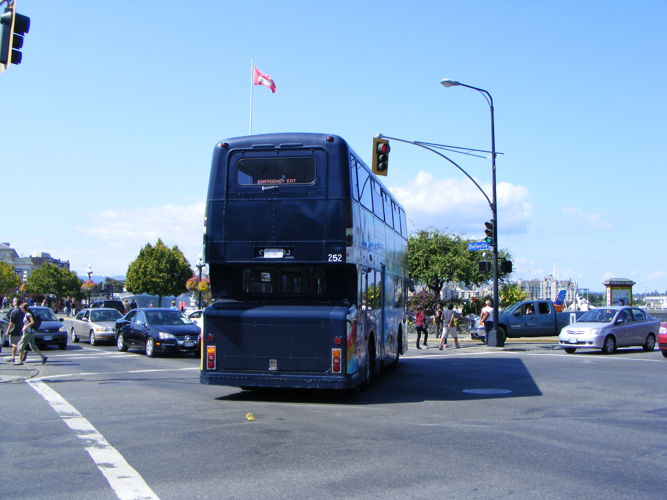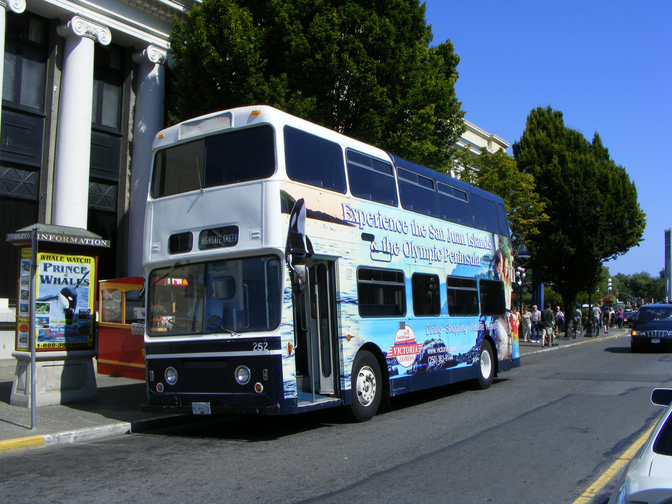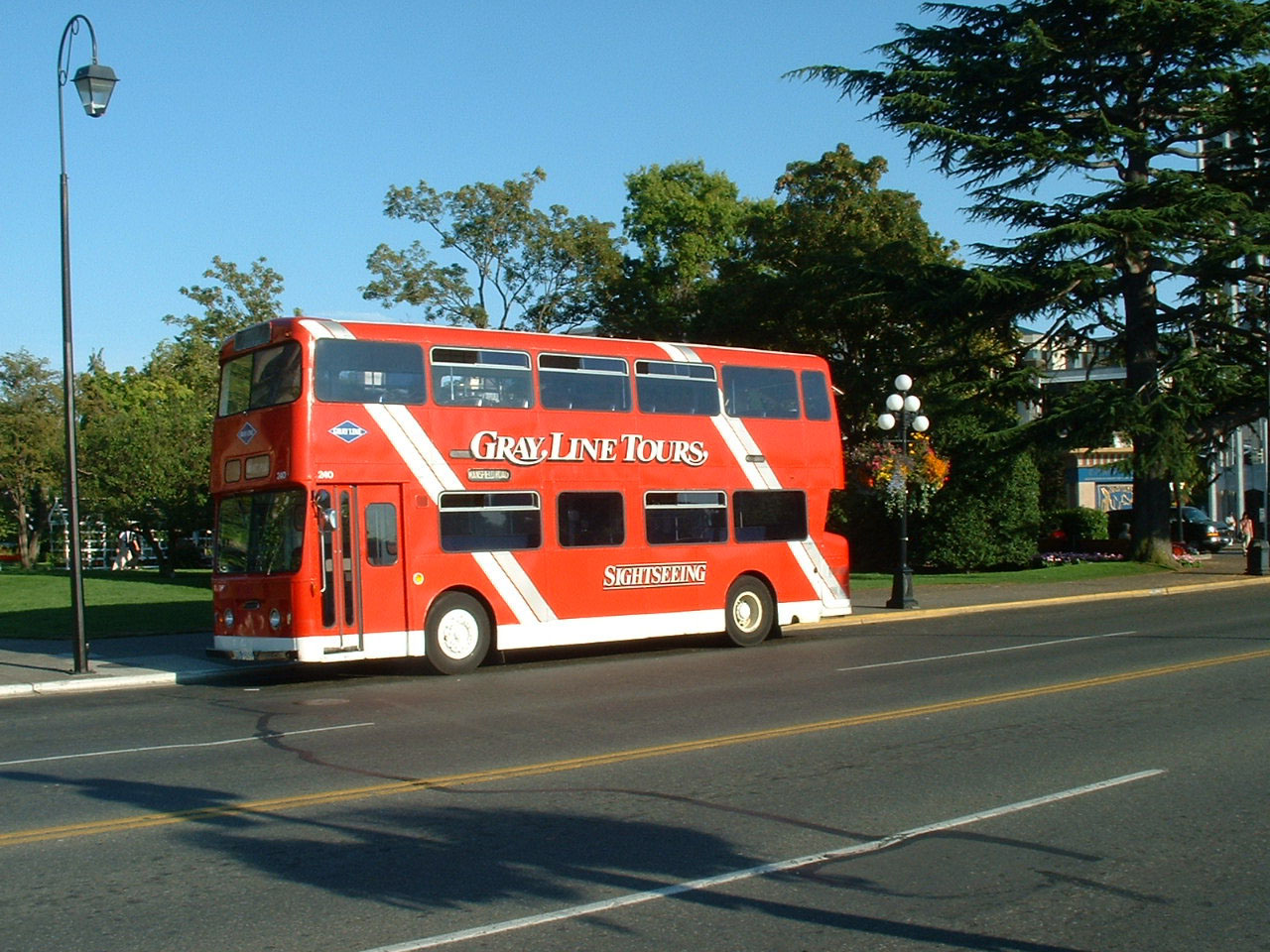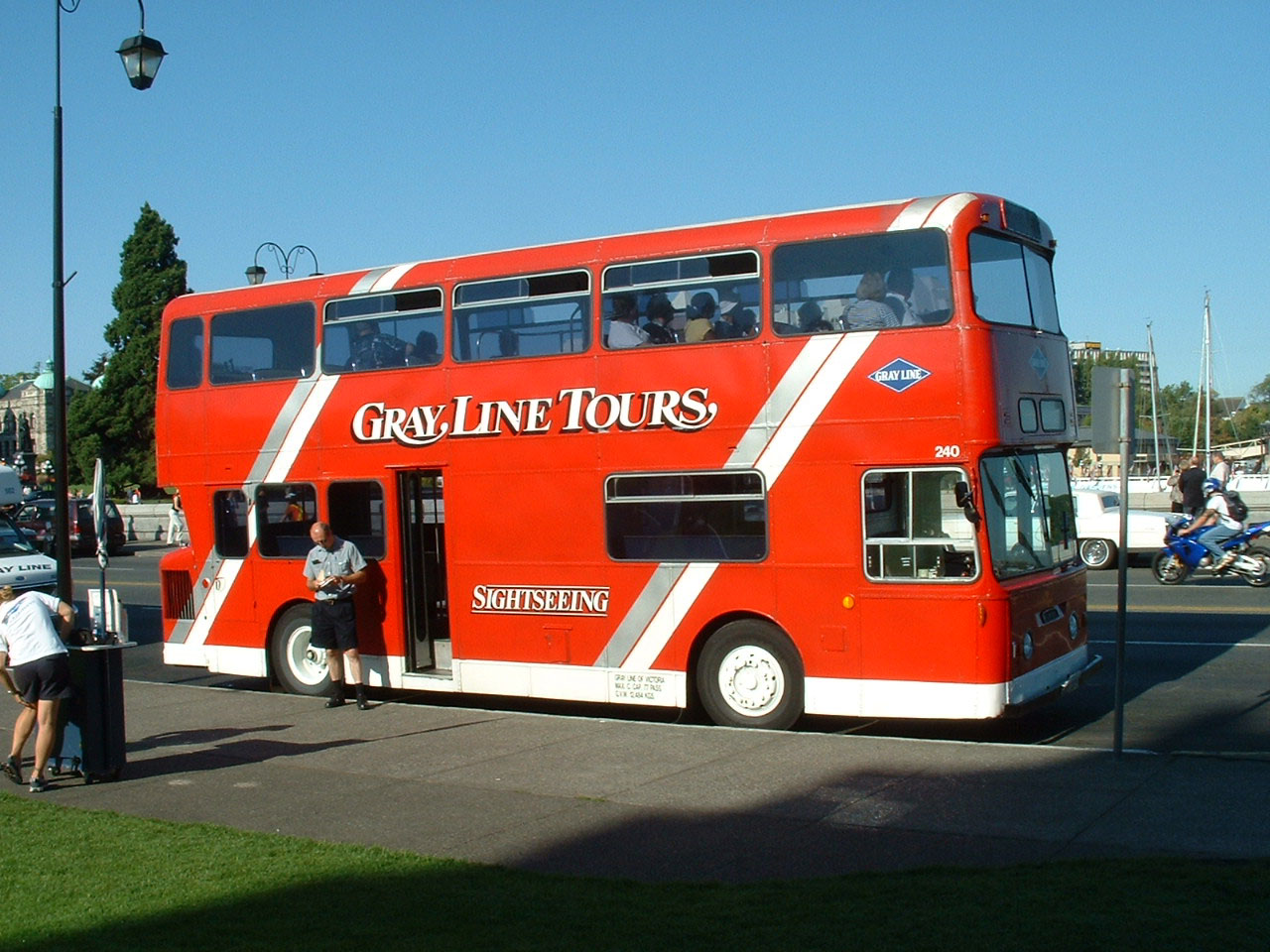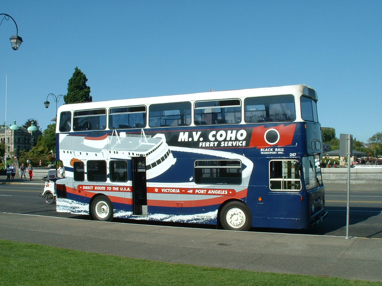 Derby Fleetline/Roe 247 (CRC247J) was also with Gray Line in Victoria in 2004, but in a special promotional livery for the Seattle ferry service aboard MV Coho.