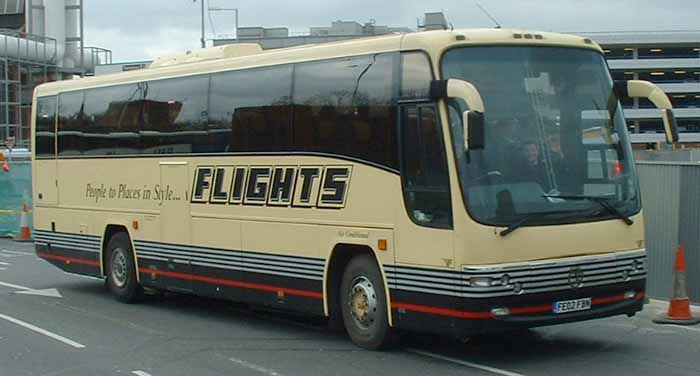 Flights have a reputation for high specification, which is probably why they preferred the Plaxton Excalibur model as seen here on a Volvo B10M chassis, A8FTG, at Heathrow over the 2001 Christmas period. |