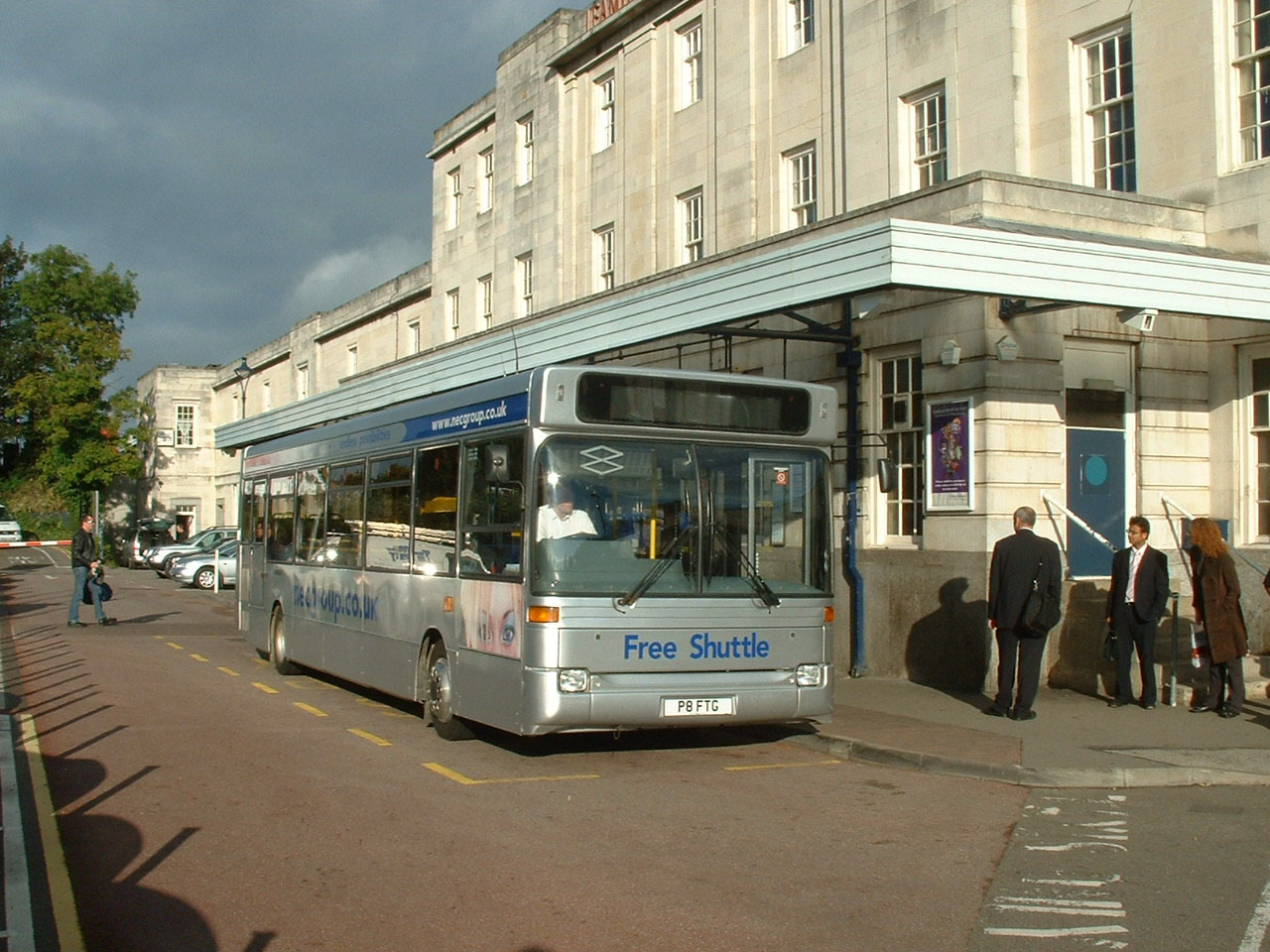 Flights had a contract for the NEC for many years and this Plaxton bodied Dart SLF is doing a Free Shuttle service to the NEC from Leamington Spa Station in Summer 2006.