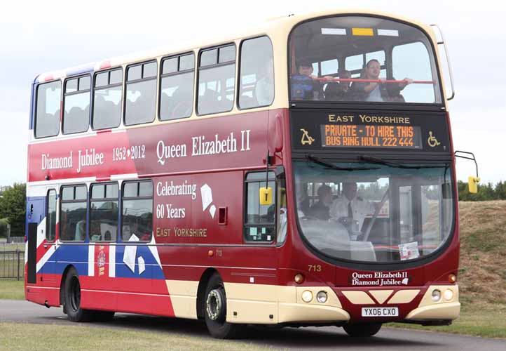 In celebration of Her Majesty's Diamond Jubilee in 2012 East Yorkshire repainted Volvo B7TL 713 (YX06CXO) in a special commemorative livery.