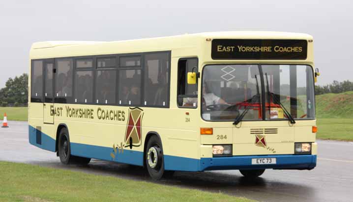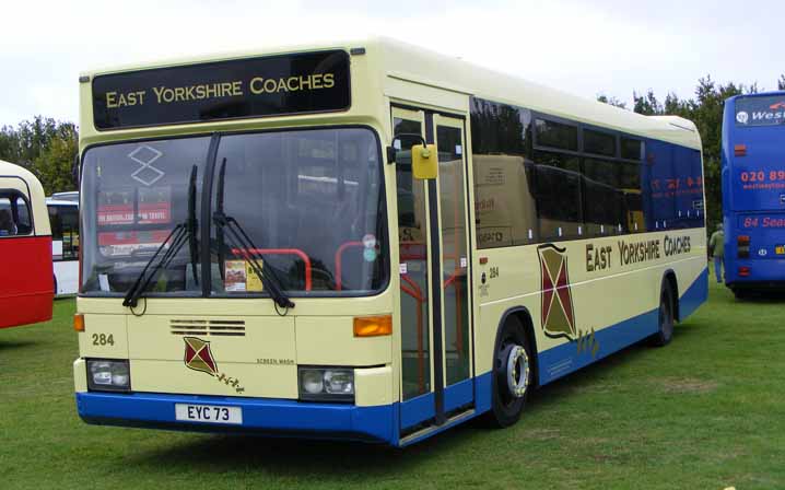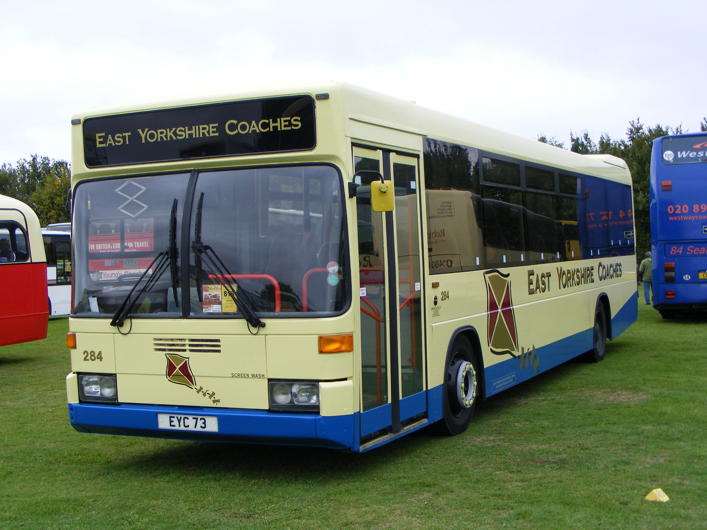 One of three Optare bodied dual purpose Mercedes O405 acquired in 1997 284 is seen arriving at SHOWBUS 2010. Having been in dark red bus livery all its life it had emerged that year as a member of the coaching unit complete with the "new" coach livery, which harks back to the colours worn by the likes of the fleet's one time fleet of Bedford OB coaches.