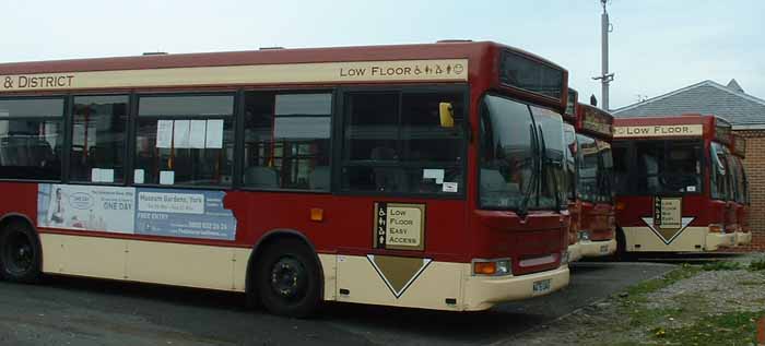 With the Plaxton factory in Scarborough the popularity of the local produce with Scarborough & District is not surprising. This line up of Darts at Scarborough Station is headed by the popular short Mini Pointer Dart (MPD) model, 476 (W476UAG).