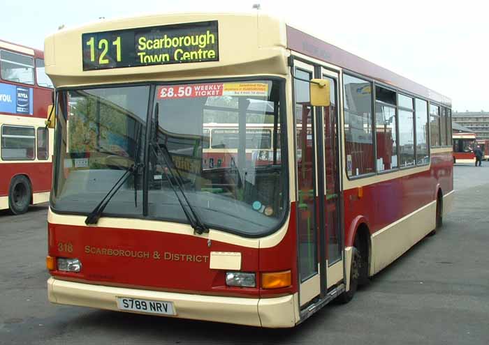 Plaxtons did not reign supreme in the elite panorama of Scarborough. Dart SLF 318 (S789NRV) has the short lived Caetano Compass body. The body design was developed by Wadham Stringer/UVG and adapted for the low floor Dart SLF before being replaced by the Caetano designed Nimbus design. Scarborough & District 318 was new to Frodingham Coaches in 1999, a company acquired by EYMS two years later, which is how the renegade got to join the Plaxton pack.